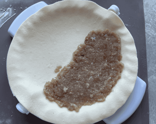 Spread the filling on one half of the dough, leaving 2 cm from the edges.