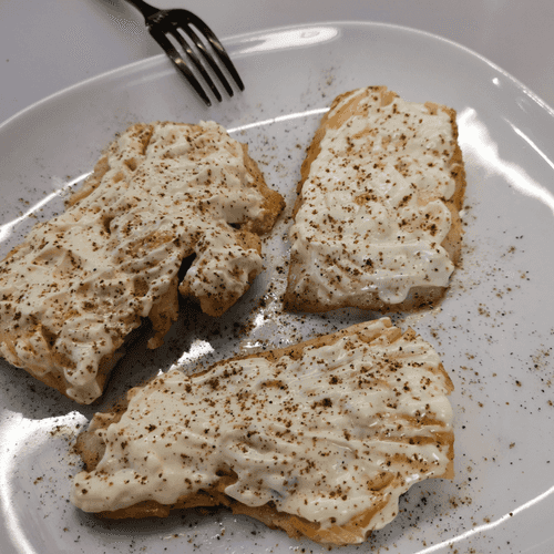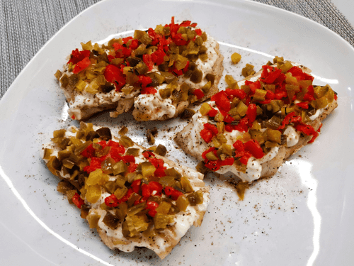 Треска с овощным топингом — это изысканное блюдо португальской кухни, объединяющее нежное филе трески и пикантную остроту халапеньо и чили. Корни этого рецепта уходят в португальские прибрежные регионы, где рыба всегда занимала центральное место в кулинарии. Обжаренная в оливковом масле с гималайской солью, треска приобретает легкую хрустящую корочку, а затем покрывается кремовым слоем майонеза и ароматным овощным топингом. Контраст текстур — сочное филе и пикантная начинка — делает блюдо по-настоящему особенным. Вкус гармонично сочетает нежность рыбы с островатыми нотками и легкой кислинкой. Идеально подходит для особого ужина, его можно подать с белым вином или свежими овощами. Простое в приготовлении, но элегантное в подаче, оно обязательно впечатлит гостей.