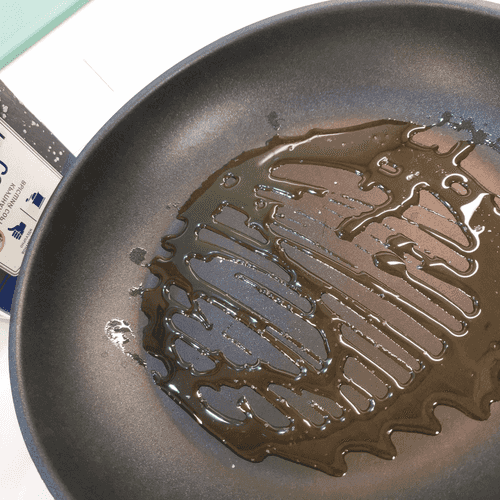 Heat olive oil with a pinch of coarse salt in a pan.