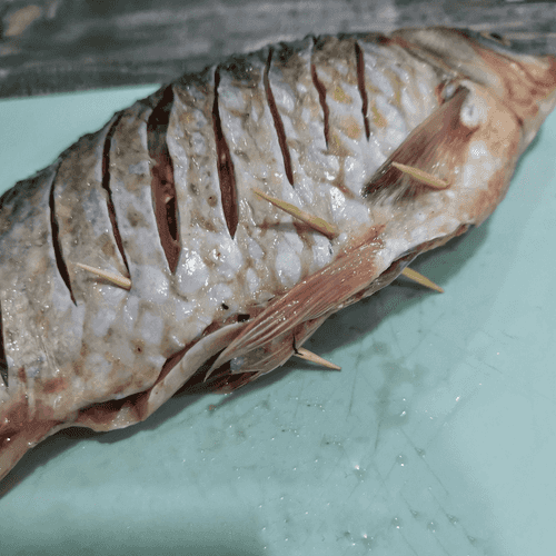 Gut the fish and make shallow cuts on both sides.