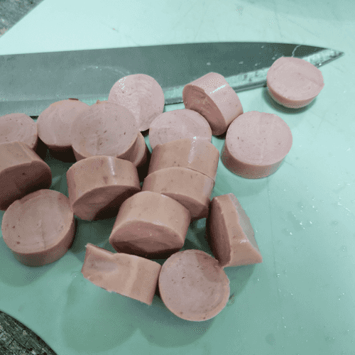 Cut the sausages into thick slices.