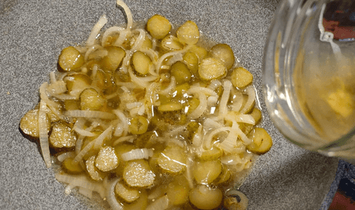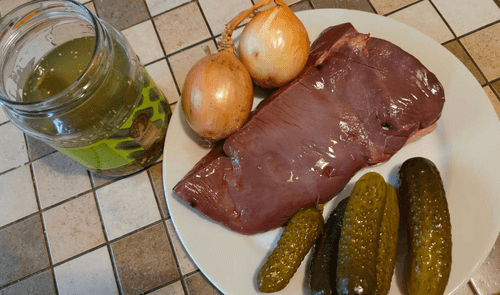 Prepare the products: wash the liver, take the cucumbers out of the jar.