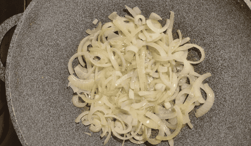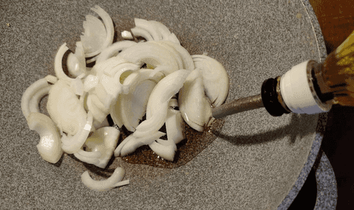 Put onion in a large pot, wok, or saucepan and add vegetable oil.