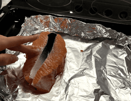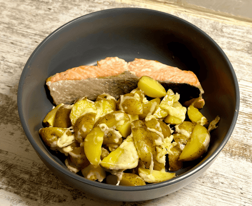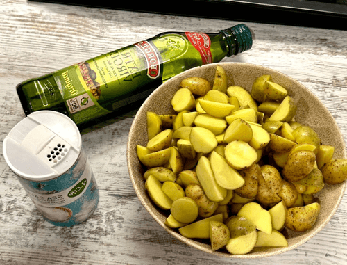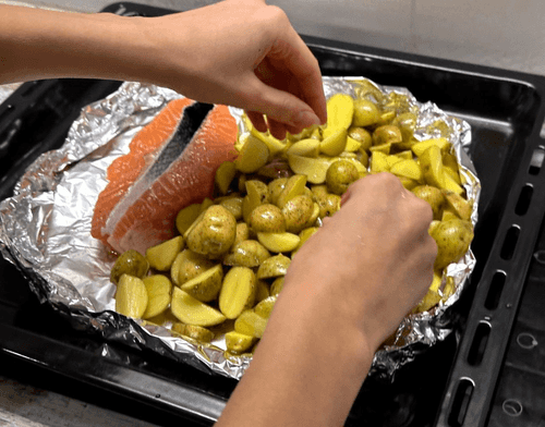 After the fish is cooked, remove it and cover the potatoes with foil, leaving them in the oven until ready.