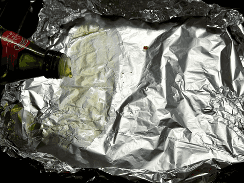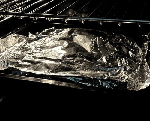 If there is no baking dish, make one from foil of the appropriate size and place it on the baking sheet.