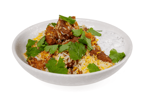 Serve biryani with chopped cilantro and mint yogurt.