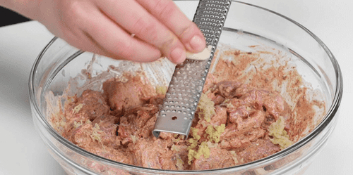 Add grated ginger and garlic pressed through a garlic press.