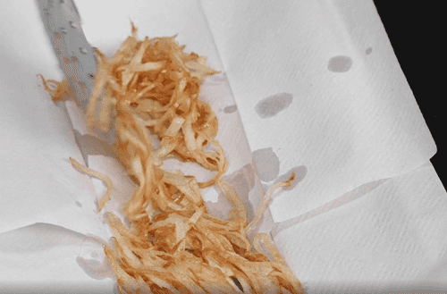 Place the cooked onions on paper towels to remove excess fat.