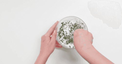 Chop the mint and mix it with the remaining yogurt. Add a little salt.