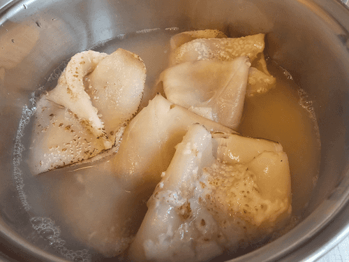 Place the cleaned carcasses in boiling water and cook for 2 minutes. Let cool.