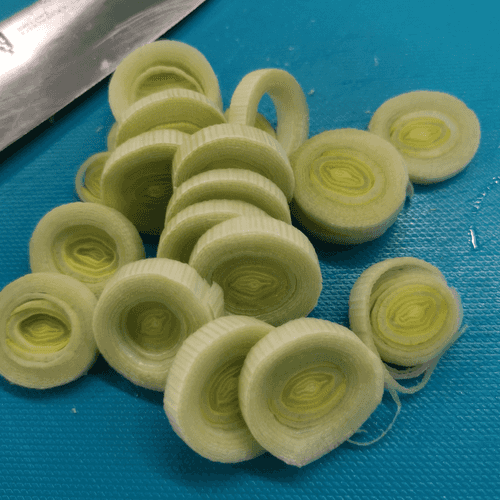 Slice the leek into rings.