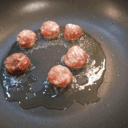 Add the meatballs to the heated olive oil in the pan.