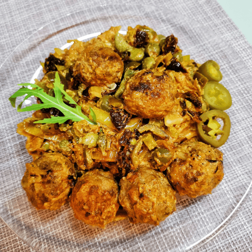 Солянка с каперсами и вялеными халапеньо — это яркое и насыщенное блюдо русской кухни, которое объединяет в себе кисло-острые и пикантные нотки. В классической солянке сочетаются мясные ингредиенты, а добавление каперсов и вяленого халапеньо придает ей выразительный вкус. Капуста делает блюдо мягким и гармоничным, а сметана и томатная паста добавляют нежности и легкую кислинку. Это блюдо подходит как для уютного семейного ужина, так и для праздничного стола, удивляя гостей богатством вкусов. Идеальное сочетание специй и соуса чили раскрывает его аппетитный аромат, а тефтели из жирного свиного фарша придают питательность и насыщенность. Солянка прекрасно сочетается с ржаным хлебом и свежей зеленью, а ее согревающий характер делает ее отличным выбором в прохладные дни.