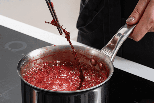 Mix two-thirds of the cranberries and simmer on low heat for about 5 minutes: to thicken the sauce slightly while keeping the berries whole. When the sauce is ready, remove the thyme sprig.