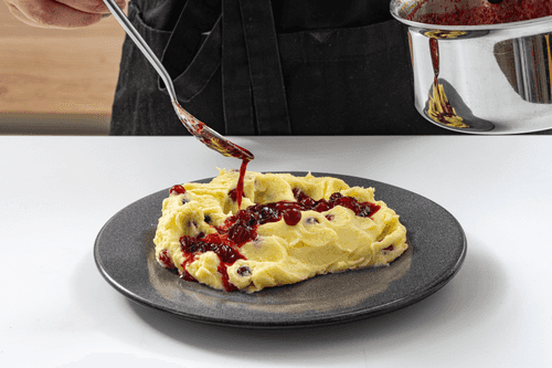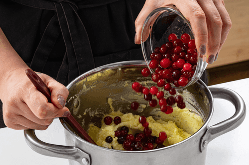 Mashed potatoes with cranberry is an amazing combination of tenderness and vibrant flavor. This traditional European dish gains a new dimension thanks to the sour berry that adds pleasant freshness and a hint of sweetness. Cranberries cooked in orange syrup with brown sugar and thyme transform into an exquisite sauce that enriches the velvety texture of the potatoes. The history of such a culinary duet traces back to northern cuisines where cranberries are not just berries but key elements in many dishes. This mash pairs perfectly with game like duck or venison, highlighting their flavor depth. This dish is a celebration of contrasts where the creaminess of butter intertwines with the lively tartness of cranberries, creating harmony on the plate.