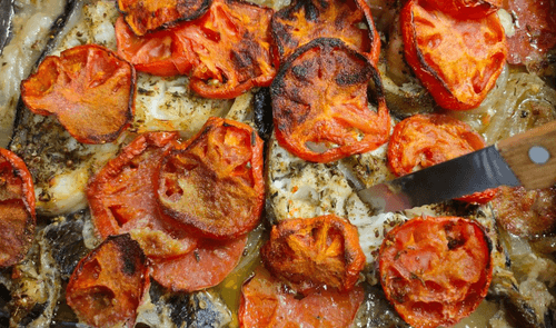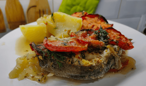 Запеченная зубатка с помидорами и луком — изысканное блюдо европейской кухни, которое сочетает в себе простоту приготовления и утонченный вкус. Зубатка, обладая нежным мясом и ярким морским ароматом, становится особенно сочной при запекании. Лук придает блюду легкую сладковатую карамельную нотку, а помидоры — приятную кислинку и свежесть. Приправа для рыбы и чеснок добавляют пряности, делая вкус более насыщенным. Это блюдо идеально подходит как для повседневного ужина, так и для праздничного стола. Гармоничное сочетание ингредиентов делает его универсальным в подаче: запеченную рыбу можно подавать с вареным картофелем, свежими овощами или просто наслаждаться ее богатым вкусом без дополнений. Простота приготовления и великолепный результат делают этот рецепт настоящей находкой для любителей морепродуктов.