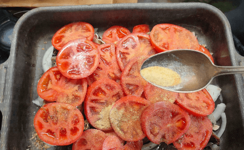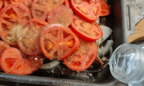 To prevent the dish from burning, add 0.5 cup of water to the baking dish.