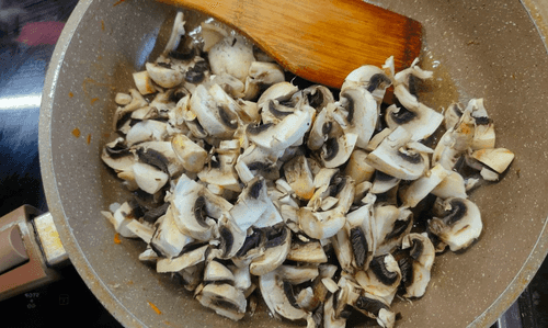 Fry the mushrooms and onions in another pan with vegetable oil (while the turkey is frying in the first pan).