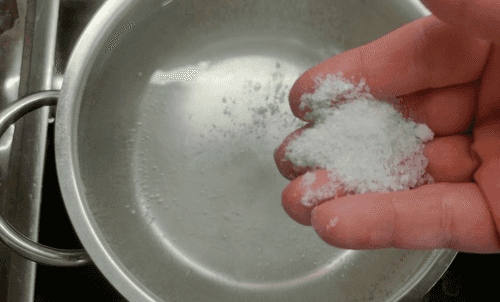 Boil water to cook noodles. Add salt.