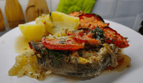 Zubatka with tomatoes and onions is a fragrant and juicy dish of Russian cuisine that combines tender fish with the refreshing taste of tomatoes and the spiciness of spices. Zubatka, known for its firm flesh, absorbs the juices of onions and tomatoes beautifully, creating a harmony of flavors. Historically, baked fish with vegetables was widely used in Russian cooking due to the availability of ingredients and simplicity of preparation. The dish turns out surprisingly tender, with a slight acidity from the tomatoes and a pleasant herbal note from dill. It is perfect for both family dinners and festive gatherings, delighting with its rich flavor and appetizing aroma.