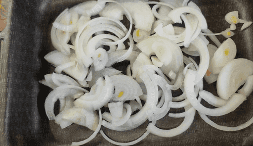 Cut the onion into half rings.