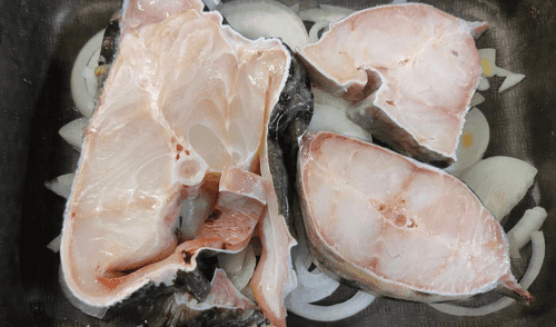 Place the fish on the onion.