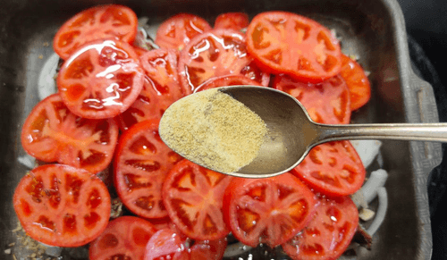 Place the tomatoes on top of the fish.