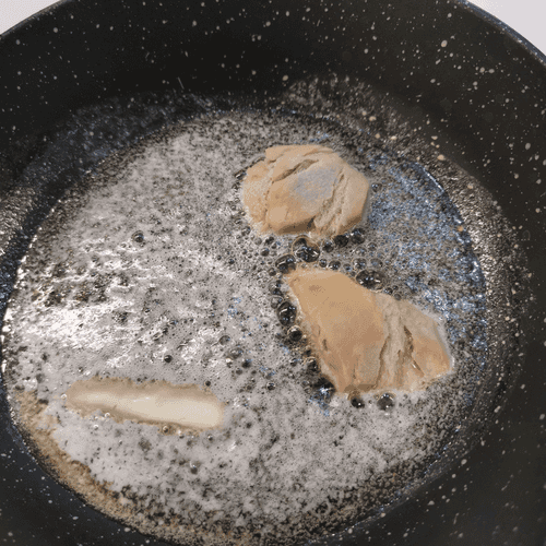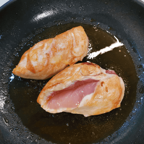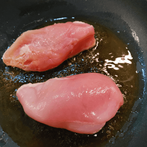 Place the chicken breast in the heated mustard oil in the pan.
