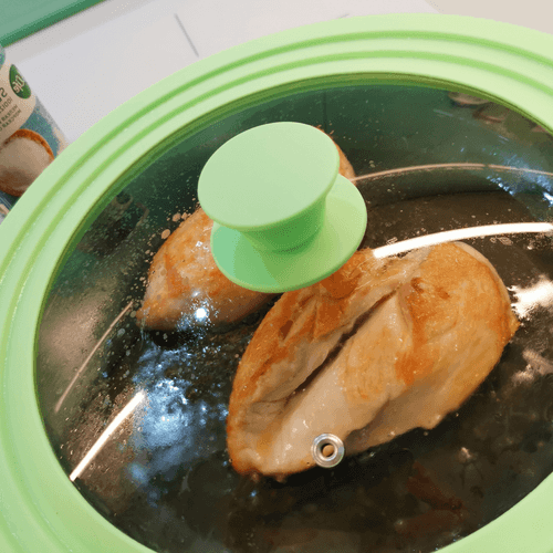 Salt the chicken breast and cover it. Cook for 15 minutes, turning occasionally.