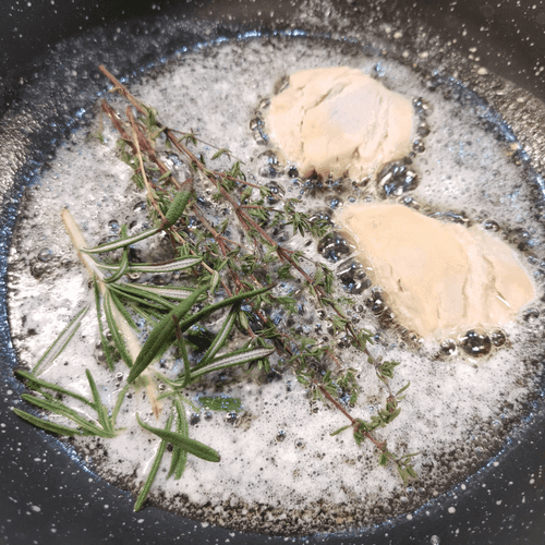 Heat butter and olive oil in a pan.