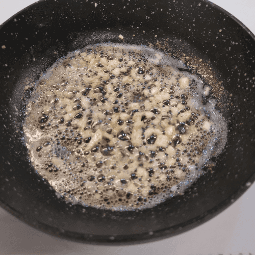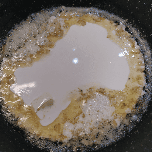 Sauté garlic for 2 minutes over medium heat. Then pour in the cream.