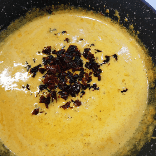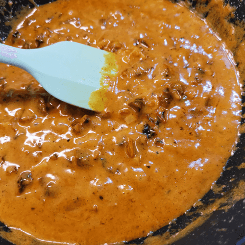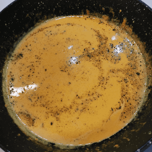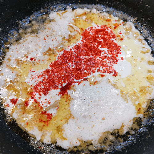 Once the cream starts to simmer, add ground chili.