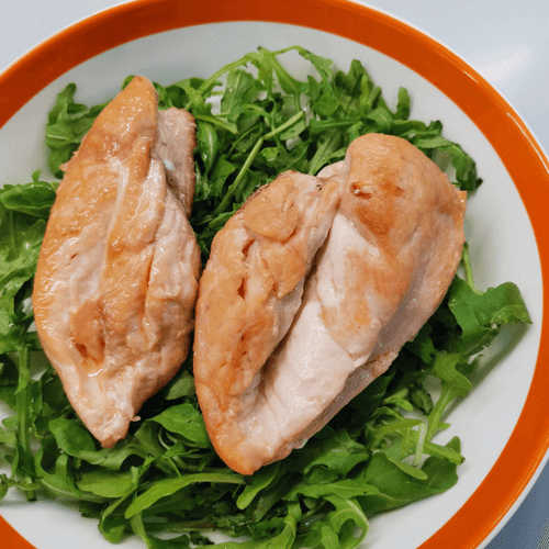 Place the cooked chicken on arugula.