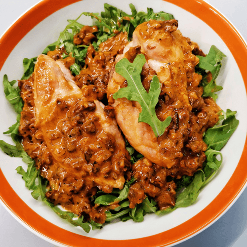 Куриная грудка в азиатском стиле – это гастрономическое путешествие в мир ароматов и изысканных вкусов. Паназиатская кухня славится своим балансом специй, остроты и нежности, и этот рецепт не исключение. Сочетание сливок, кокосового молока и специй создает бархатистый, насыщенный соус, который обволакивает золотистую куриную грудку. Имбирь, чеснок, тимьян и розмарин придают блюду изысканную глубину вкуса, а вяленые томаты добавляют пикантные нотки. Гарнир из свежей руколы делает блюдо легким, освежающим и гармоничным. Это идеальное сочетание для тех, кто любит насыщенные ароматы восточной кухни, но ценит нежность и утонченность. Куриная грудка в азиатском стиле – идеальный вариант для особенного ужина или уютного вечера с семьей.