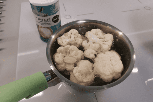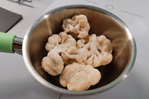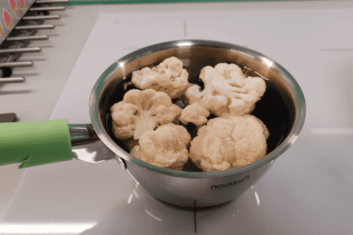 Break the cauliflower into florets and place them in a small pot.