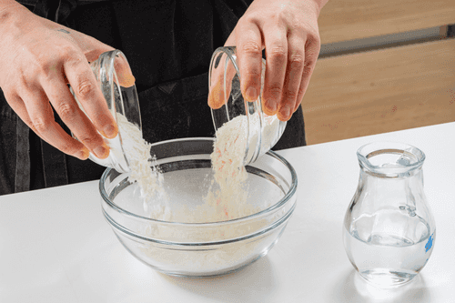 For the batter, mix starch, flour, and 120 ml of water.