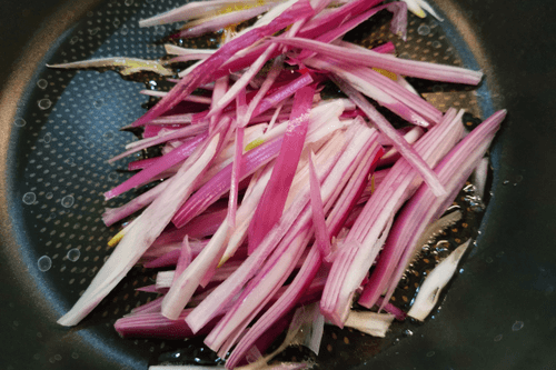 In a deep skillet, heat 1 tablespoon of fat with mustard oil.