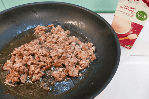 Salt the minced meat. Fry, stirring, for 5-7 minutes over medium heat.