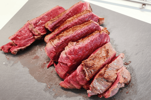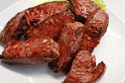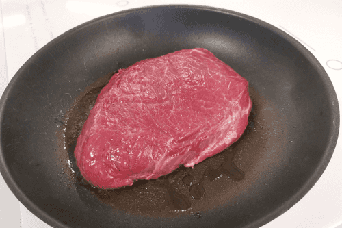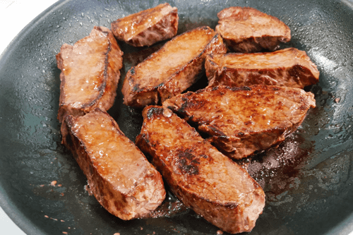 Once the meat is browned, remove from heat and let it cool slightly. Then slice into medallions.