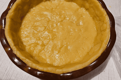 Line the mold with parchment. Roll out the dough to a thickness of 4 mm and place it in the mold.