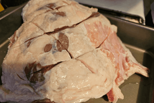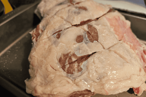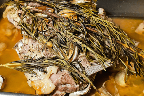 Preheat the oven to maximum, then add the lamb and reduce the temperature to 170 degrees. Bake for 3 hours. To check the meat's readiness, you can make a cut.