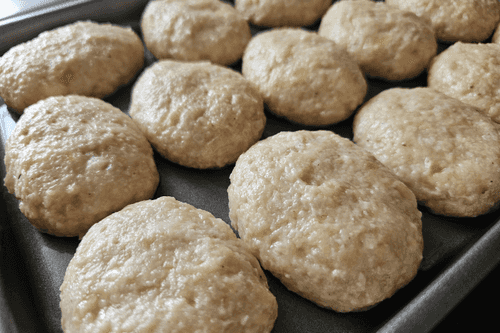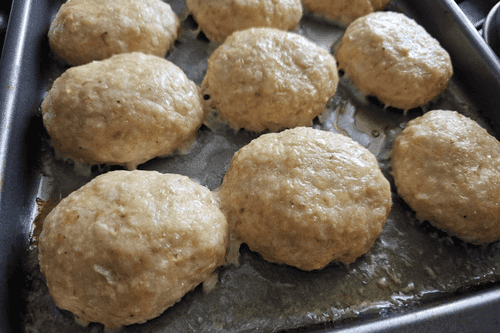 Bake for 10 minutes in a preheated oven at 200 degrees. Then pour 50-100 ml of water onto the baking sheet and bake for another 15-20 minutes.