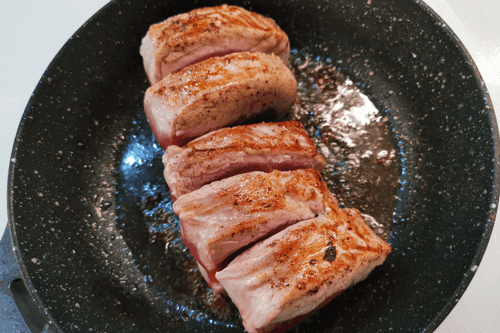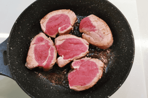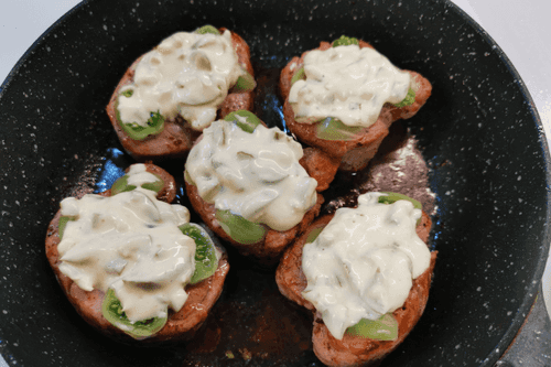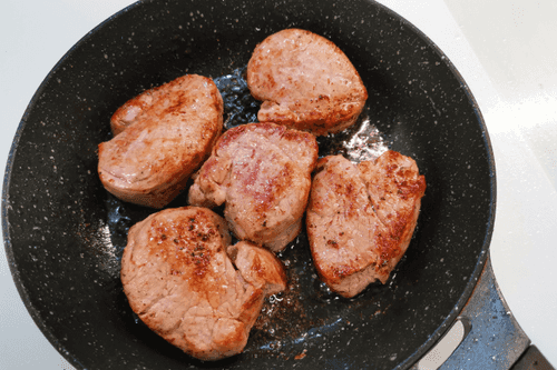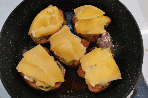 Slice the cheese and place it on the medallions. Cover with a lid and reduce the heat to minimum.