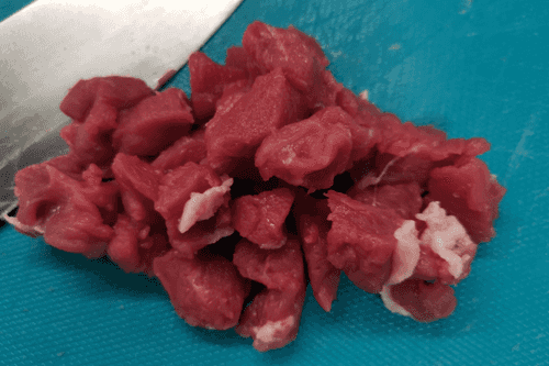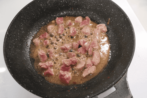 Cut the pork into cubes.