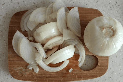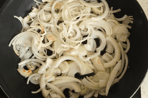 Pour sunflower oil into a well-heated pan and fry the onion until golden.