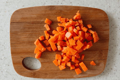 Place the carrot next to the meat, season with salt and pepper to taste.