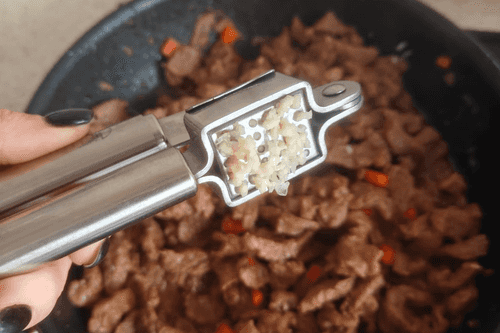 Pass the garlic through a press and sauté for another 2 minutes until ready.