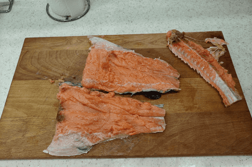 Make an envelope from foil, place the salmon inside, and fold the edges. Bake for 35–40 minutes.