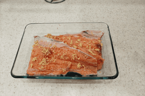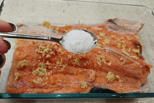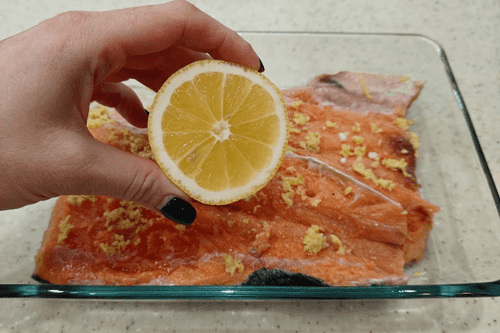 Sprinkle with lemon juice and let it sit while the oven preheats. Preheat the oven to 190 degrees.