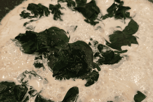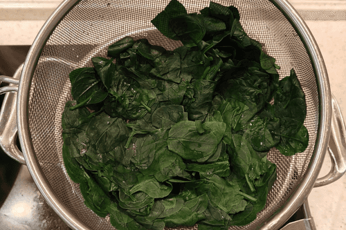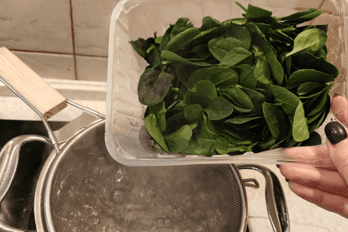 Blanch spinach in boiling water for 1-2 minutes until wilted.